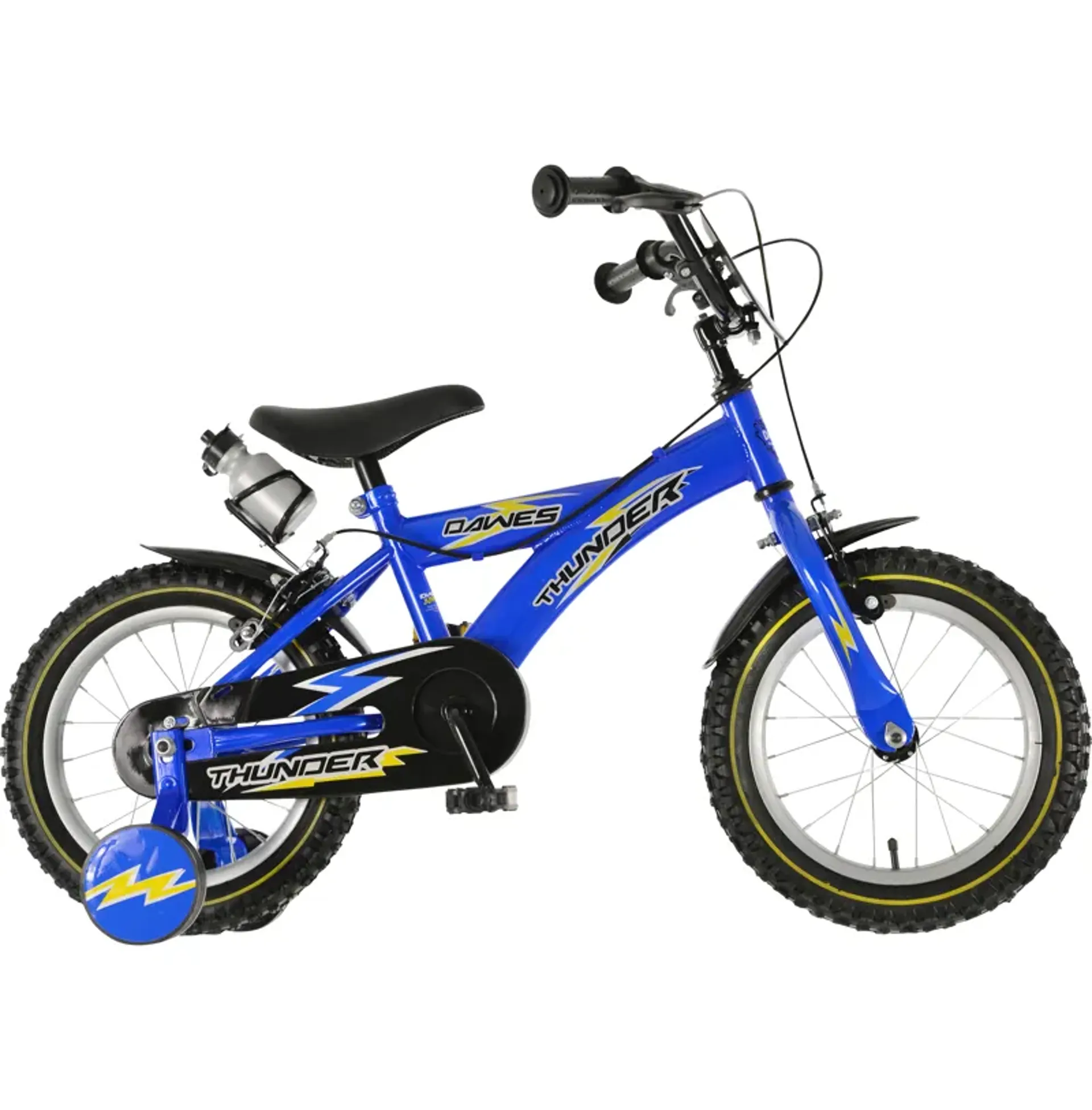The Dawes Thunder’s tough MTB style frame design, mudguards, number plate and tyres with racing stripe provide a bike which is strong, easy to use and also looks great!