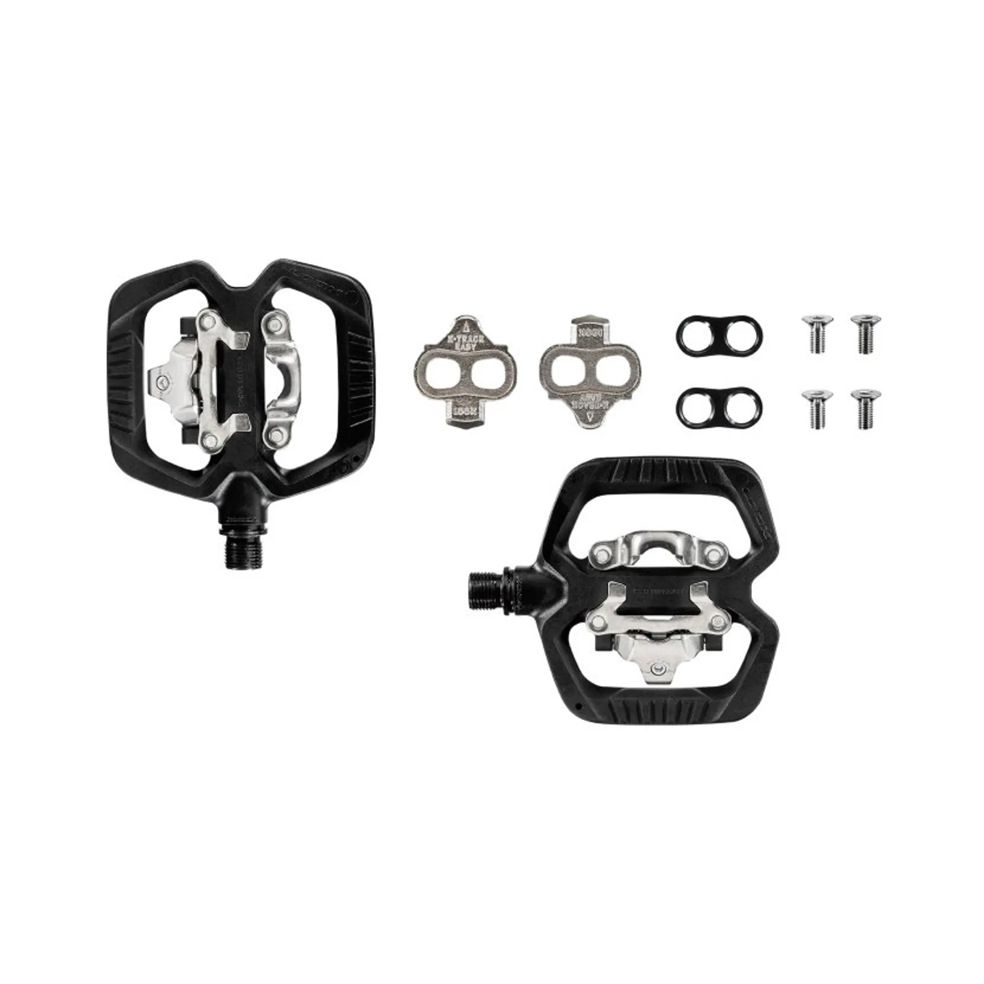 The clipless side is based on a mechanism compliant with the micro cleat standard, compatible with spd cleat. This mechanism features across the entire range and enables simple and secure clip-in and clip-out. The retention adjustment system enables an adjustment from 5 to 10. All the pedals are supplied with the easy cleat with 30% easier clip-in and more natural multidirectional clip-out, offering the possibility of a movement combining rotation and traction.